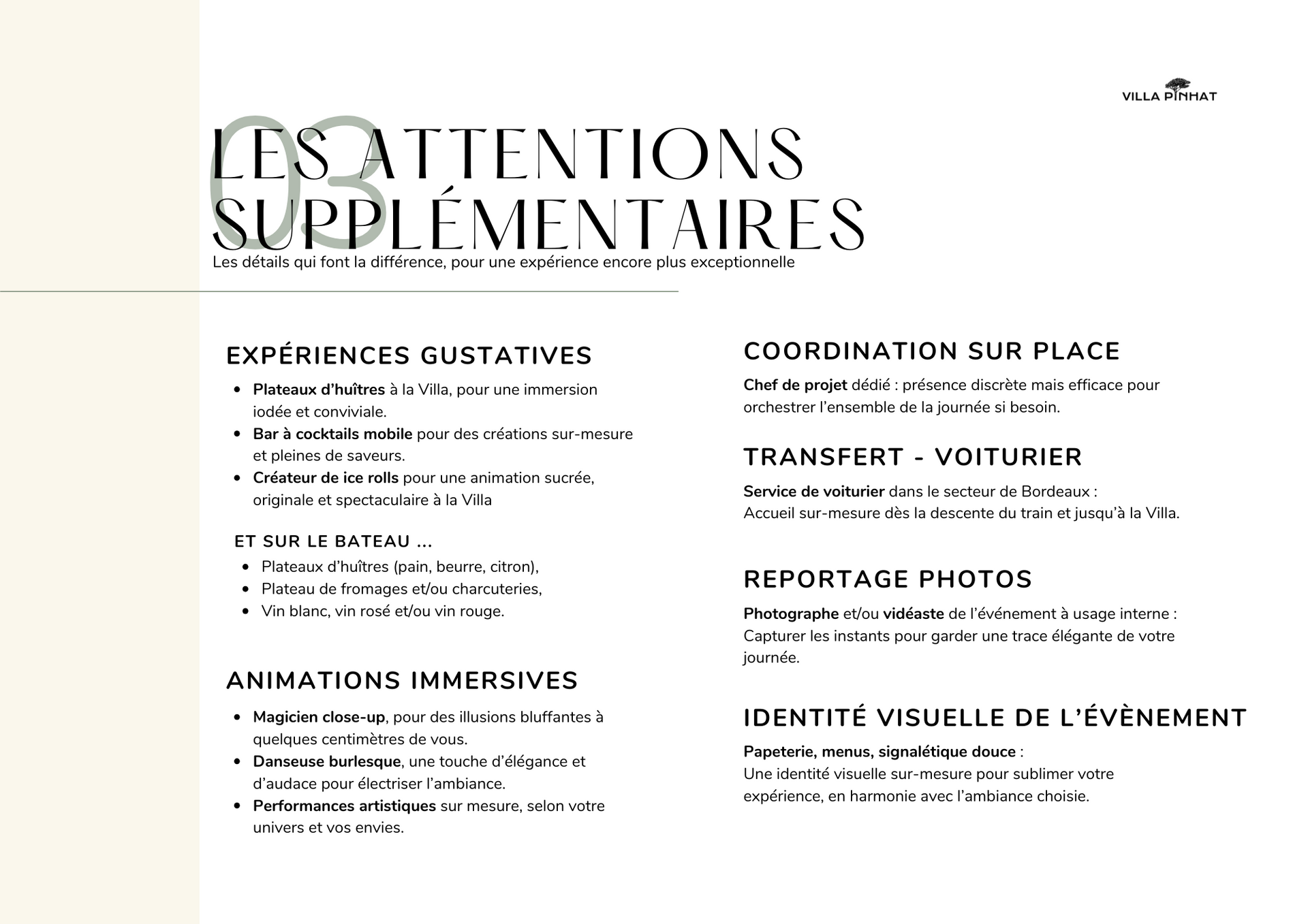 *Chaque service peut être modulée selon vos envies et disponibilités. Écrivez-nous pour en parler !
