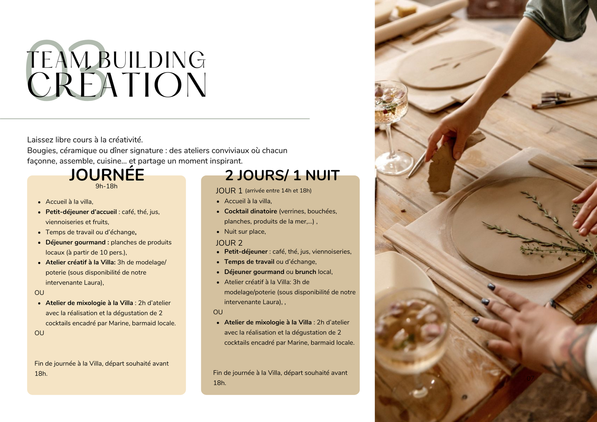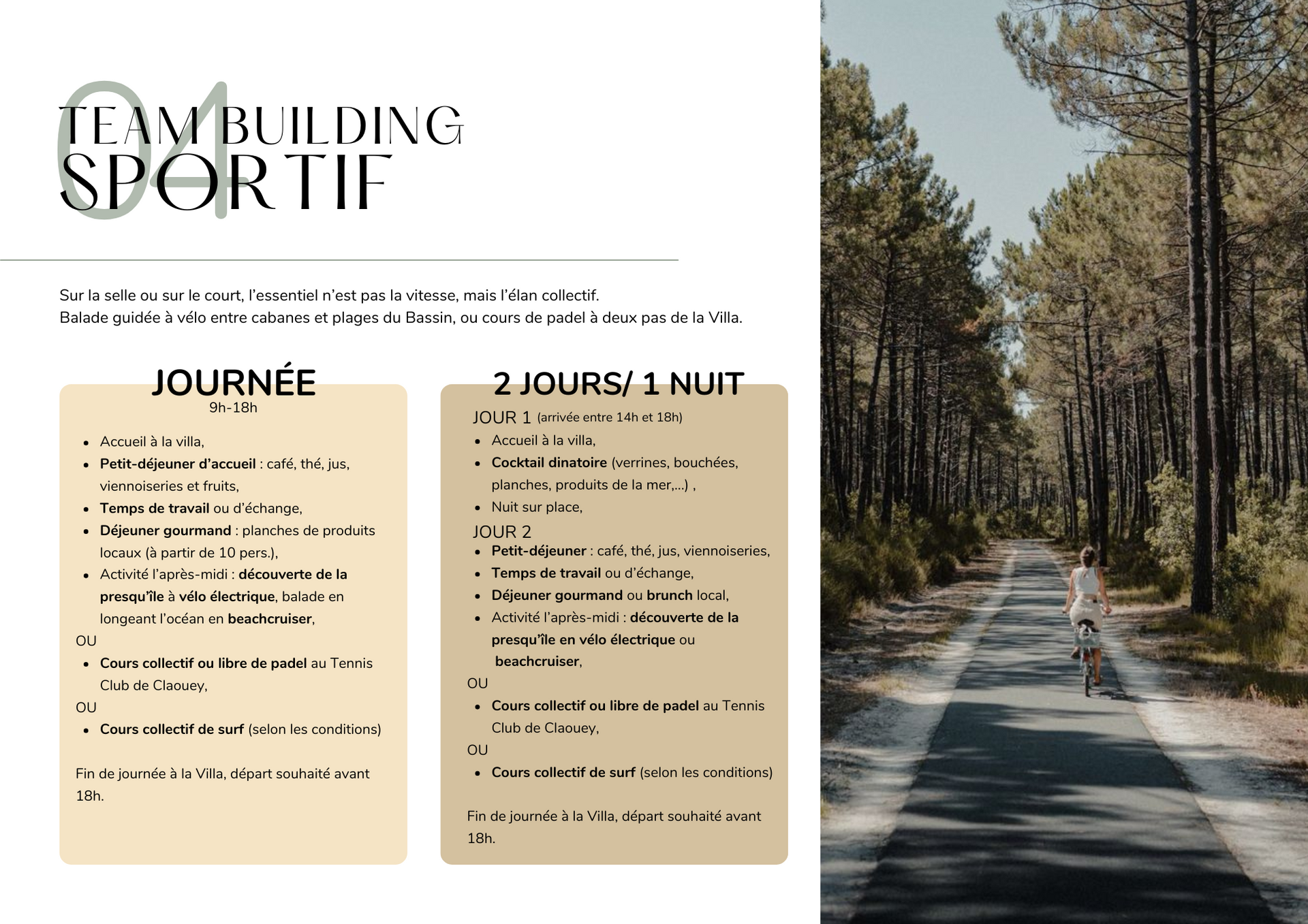 *Chaque activité peut être modulée selon vos envies et disponibilités. Écrivez-nous pour en parler !
